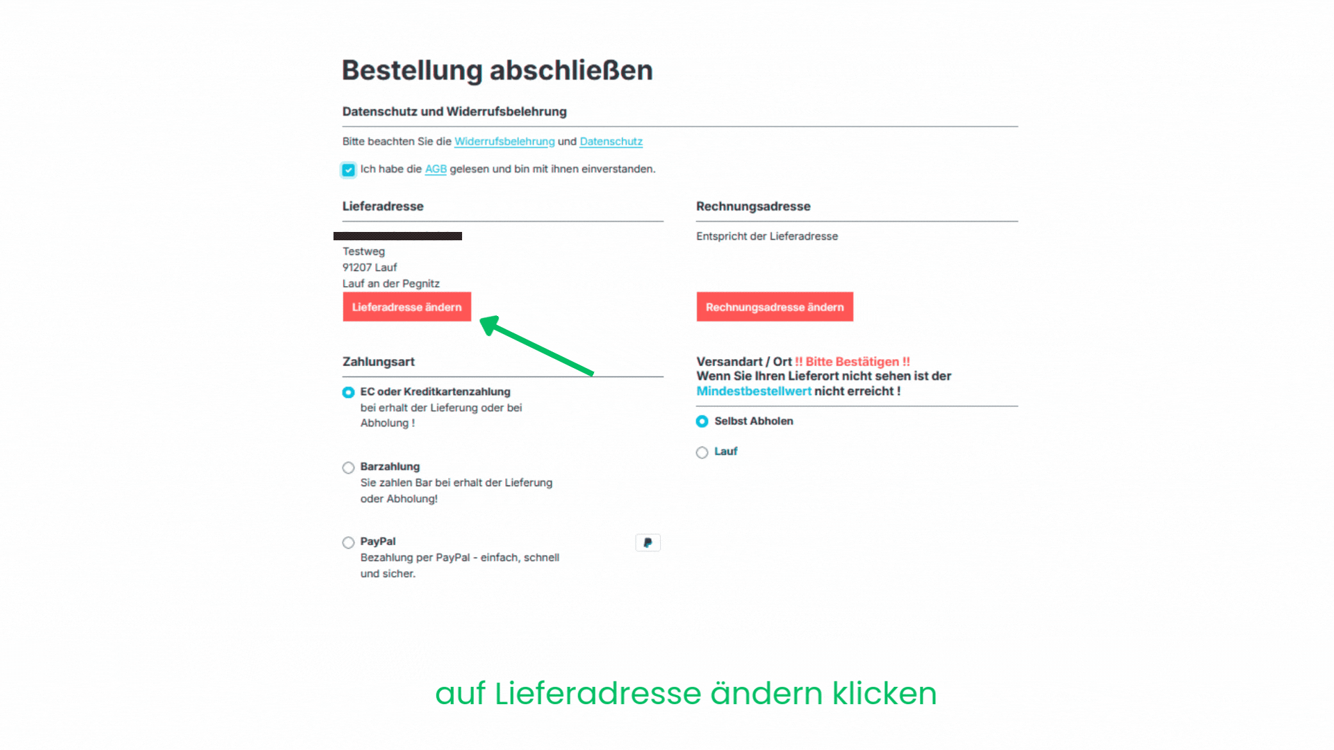 4) Klicken Sie erneut auf "Lieferadresse Ändern"